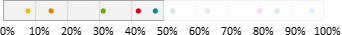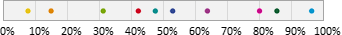Auswahl-Wahrscheinlichkeit in ProzentGeben Sie einen Prozentwert zwischen 0 und 100% ein. Mit dieser Wahrscheinlichkeit gehört ein Abonnent zur Zielgruppe. Beispielsweise bewirkt ein Wert von 25%, dass ungefähr (siehe Hinweis) ein Viertel aller Abonnenten zur Zielgruppe gehören. Dazu verteilt Glinicke alle Abonnenten auf einem Zahlenstrahl zwischen 0 und 100%. Bei 10 "bunten" Abonnenten könnte eine Variante so aussehen: