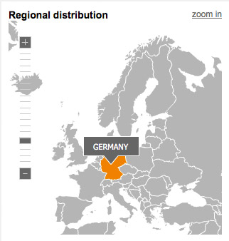 Glinicke generated based on the IP addresses of subscribers an overview of the 'local distribution'. If openings were counted in one country, this will be color coded. By clicking on the country a magnified view appears and cities become visible as points. The larger the dots, the more Openings were counted in this city. Move the cursor over an item, you see the Openings to the location. The data relate to the unique Openings (unique).