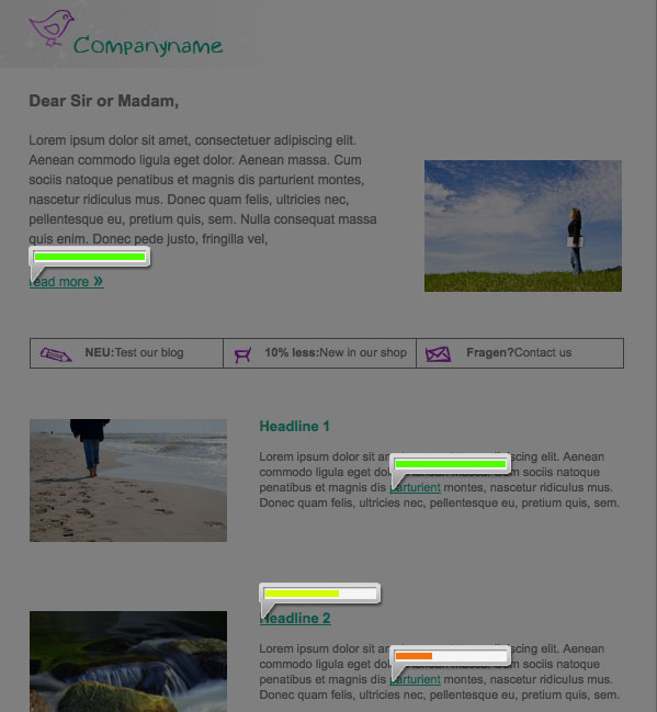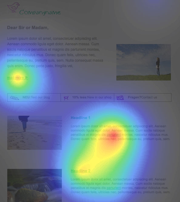 The click- and heatmap offer a visually very nice overview which links in your newsletter were particularly interesting for your subscribers.