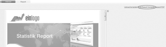 To edit your design or the elements for the standard-report, please click in a first step on the button 'Edit Report Template'. Now you can edit the name and the description of the report template.